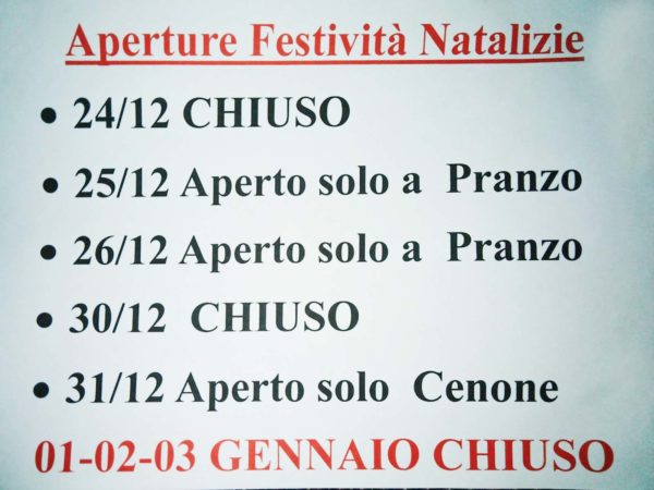 Ecco qui di seguito le aperture (e le chiusure) delle Festività Natalizie 2019 de Il Villico Music & Food.Ringraziamo tutti i nostri clienti per la preferenza accordataci.Buone Feste a tutti. 24/12 CHIUSO 25/12 Aperto solo a PRANZO 26/12 Aperto solo… Continua a leggere →