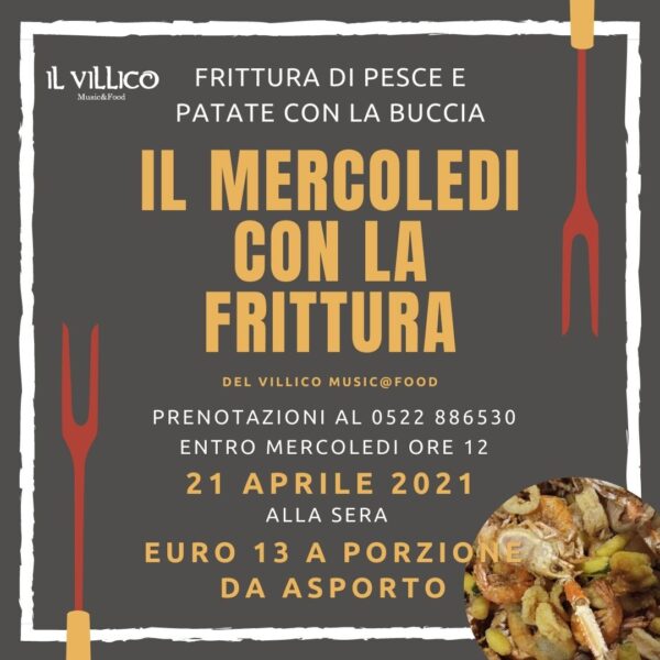 Mercoledi 7 aprile ancora la Frittura del Villico La frittura del mercoledi sera del Villico . Frittura di pesce e Patate con la buccia per una serata sfiziosa. Da asporto con prenotazione entro le ore 12 dello stesso giorno al… Continua a leggere →
