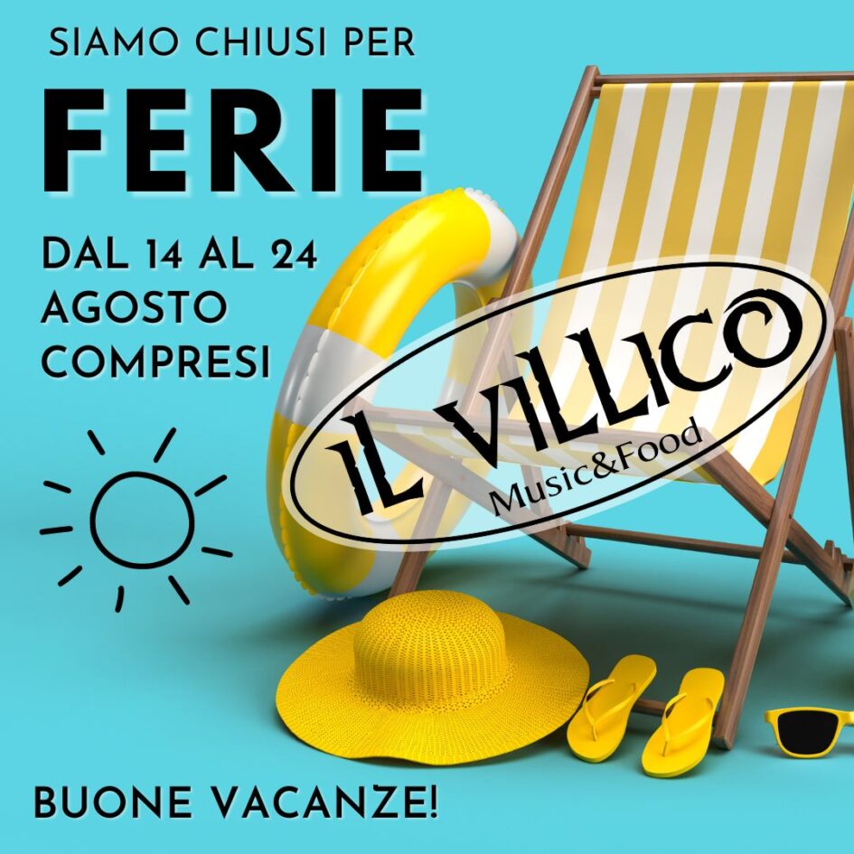 🔴 Il Villico Music & Food, chiude per ferie da lunedì 14 a giovedì 24 AGOSTO compresi.