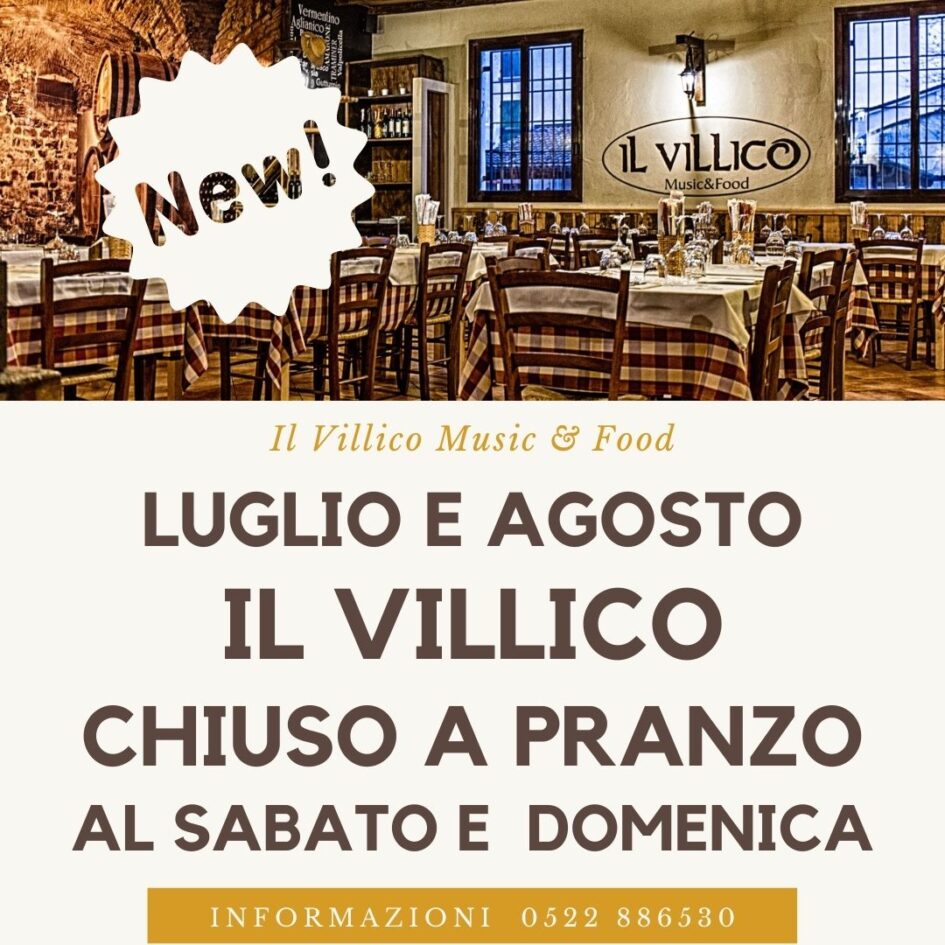 Comunichiamo alla gentile clientela che Il Villico Music&Food nei mesi di Luglio e Agosto NON effettuerà il servizio del PRANZO nei giorni di SABATO E DOMENICA. Per il resto continueremo ad accogliervi nella distesa estiva oppure all’interno climatizzato. Grazie.
