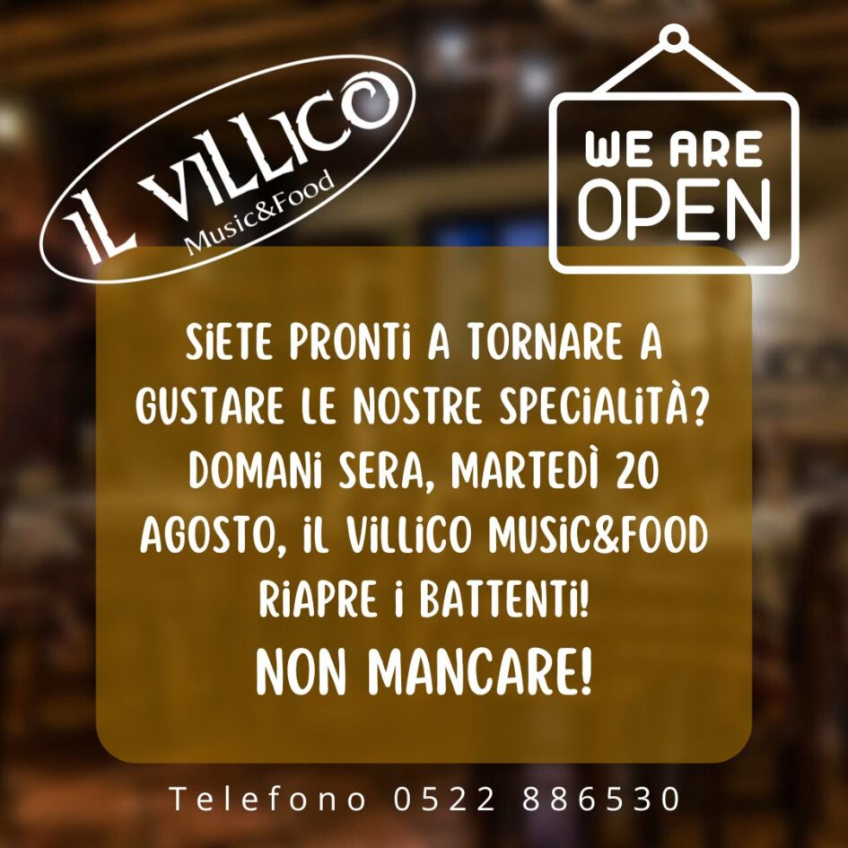 Domani sera, martedì 20 agosto, il Villico Music&Food riapre i battenti!